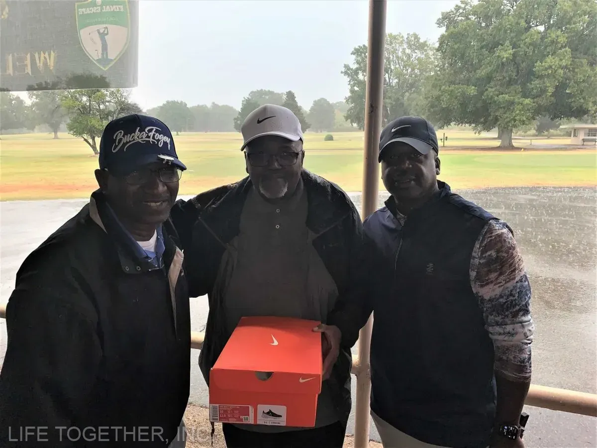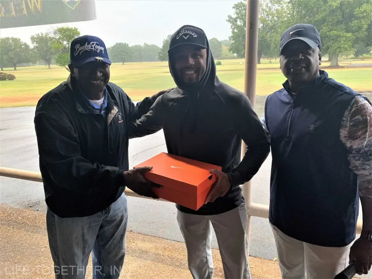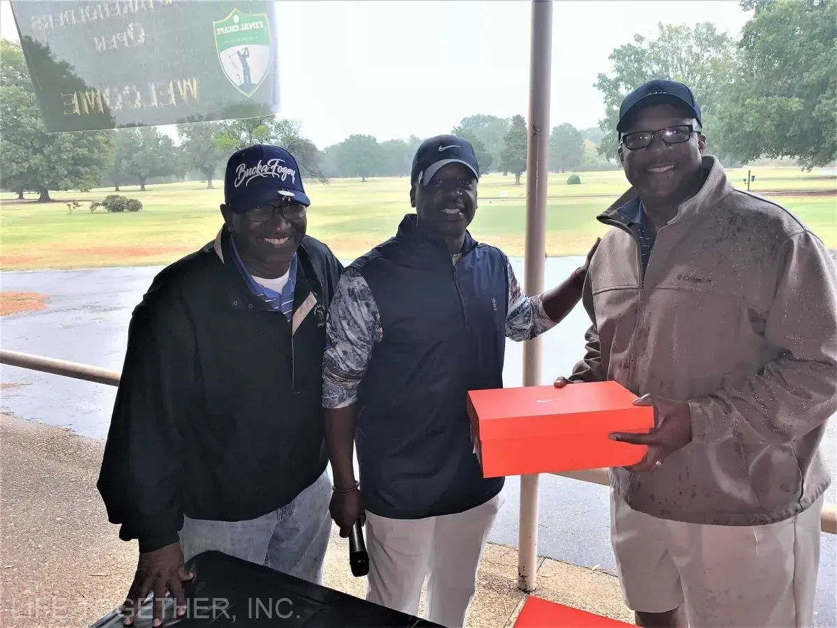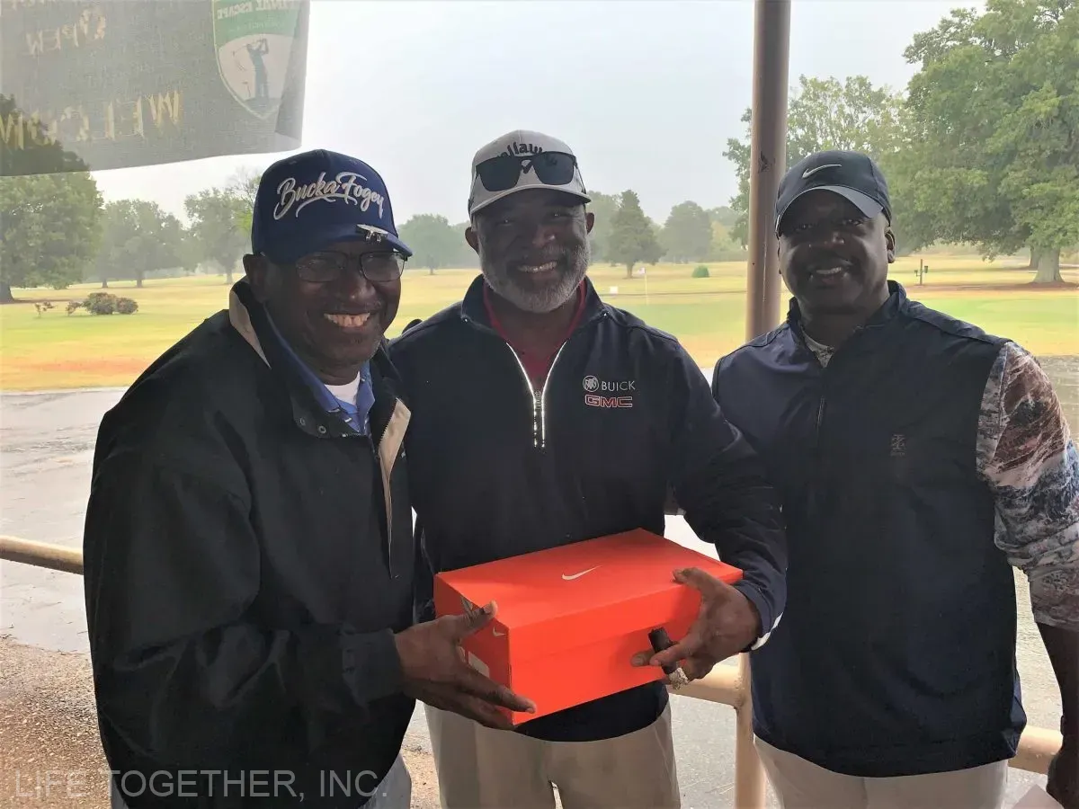 Mr. Polk McCary first recipient of the Odom Award, Bishop David Hall, and Mrs. Shirley Odom